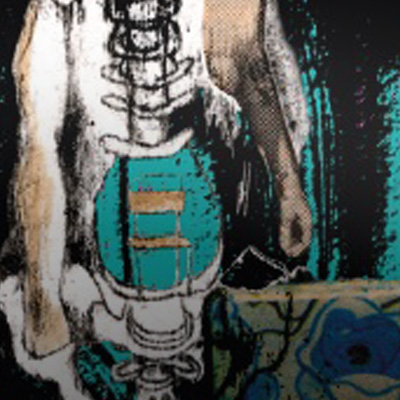 La superficie rectangular se quiebra por el peso y superposición de acciones. En el medio del caos, surge de las cenizas: un ojo en cada esquina.